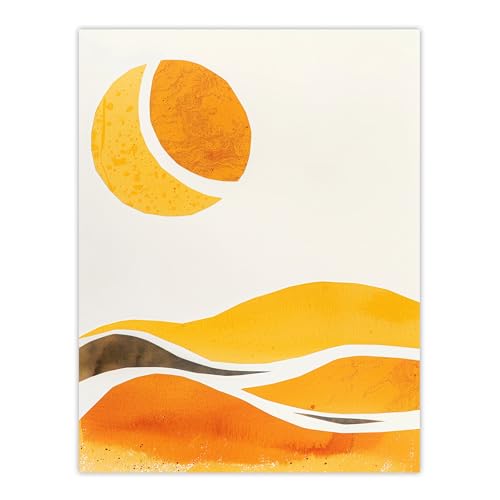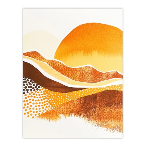 Artery8 Abstract Orange Amber Landscape Hills and Sun Living Room Large Wall Art Poster Print Thick Paper 18X24 Inch