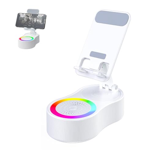 Sonicdrop Dock, Bluetooth Speaker Stand, Foldable Angle Phone Charger Stand, Mini Portable Ambient Light Stereo, with 360 Degree Rotation & RGB Colors Light, for All Smart Phone (White)