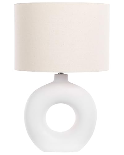 Keramisk bordslampa Art Deco Style Ambient Light Beige Lampskärm Vit Venta