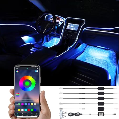 TABEN Bilinredning Ambient Light 64 Färger App-kontroll + Fotljus Bildekoration Atmosfärbelysningskit Vattentät Optisk Fiber Atmosfär Neonremsa Kalla Ljus 1W DC 12V-24V 6m
