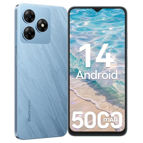 Blackview Wave 8C Telephone Portable Pas Cher 6Go+64Go/TF 2To, Android 14 Smartphone Débloqué 4G Dual SIM, Octa Core, Écran 6.5" HD+/60Hz, Batterie 5000mAh, 13MP+8MP, Face ID/GPS/OTG/FM/2Ans Garantie