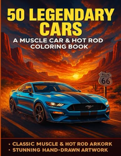 50 Legendary Cars: A Muscle Car & Hot Rod Coloring Book for Adults: Classic & American Muscle Cars – High-Octane Coloring Fun for Car Enthusiasts