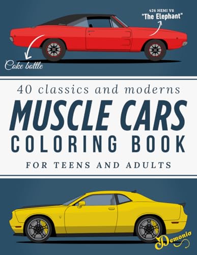Muscle Cars Coloring Book for Teens and Adults: 40 Legendary American Cars from the 1960s to Today: 40 of the Greatest Muscle Cars in History, ... Are Easy to Color, with Specs, Fun Facts.