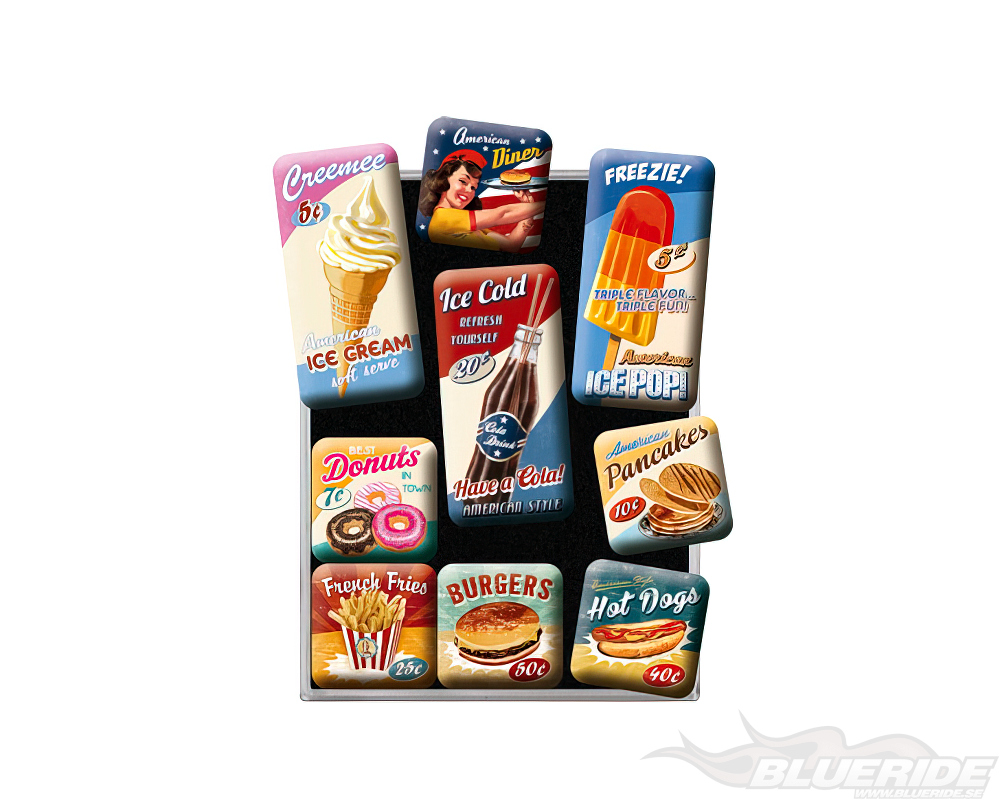Nostalgic-Art Kylskåpsmagneter i retrostil, American Diner – Presentidé för diner-älskare, Magnetset för magnettavlor, Deko vintagedesign, 9 stycken