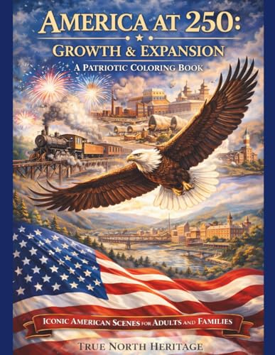 America at 250 -Growth & Expansion A Patriotic Coloring Book: Iconic American Scenes for Adults and Families