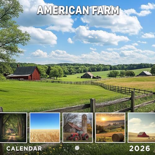 American Farm Calendar 2026: Rustic Scenes and Rural Serenity | Kalender Calendario Calendrier | Lunar Moon Phases - Bonus 3 Months 2025