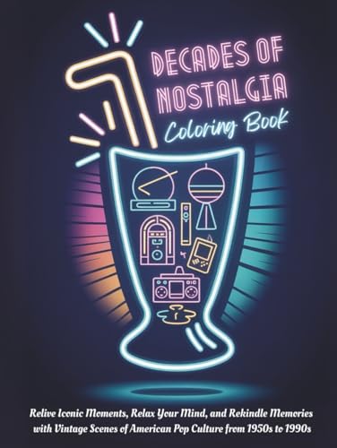 Decades of Nostalgia Coloring Book: Relive Iconic Moments, Relax Your Mind, and Rekindle Memories with Vintage Scenes of American Pop Culture from 1950s to 1990s