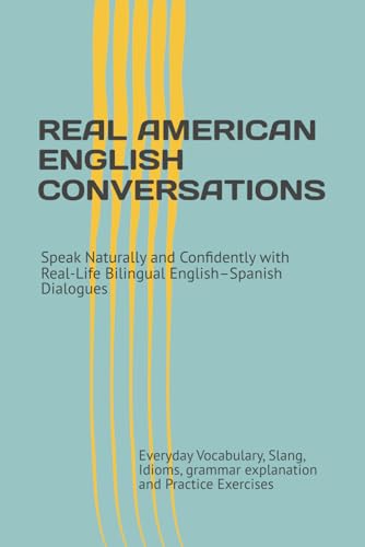 REAL AMERICAN ENGLISH CONVERSATIONS: Speak Naturally and Confidently with Real-Life Bilingual English–Spanish Dialogues, Everyday Vocabulary, Slang, Idioms, grammar explanation and Practice Exercises