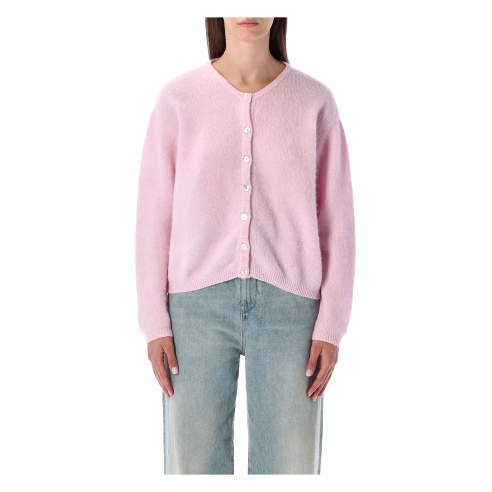 American Vintage, Stickade Tröjor , Dam, M, Fuzzy Cardigan med Rund Hals