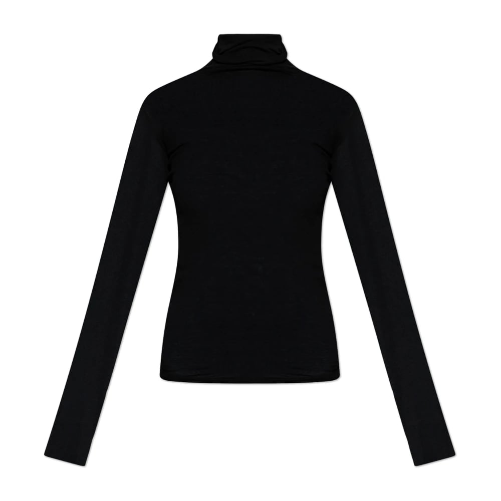 American Vintage, Stickade Tröjor , Dam, M, Bomull, Slim-fit turtleneck