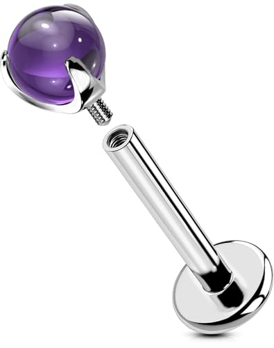 OUFER Kroppspiercing internt titan läppstift 16 g helix piercing smycken ametist tragus snäcka labret knoppörhänge stänger ring 6/8/10/12 mm labret piercing, 10mm, Titan, Ametist