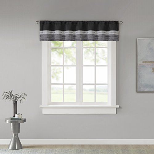 Madison Park Amherst enkelpanel, falsk siden, stångficka för gardiner med integritetsfodring för vardagsrumsfönster, draperi i sovrum och sovsal, 127 x 45,7 cm (50 x 18 tum), svart