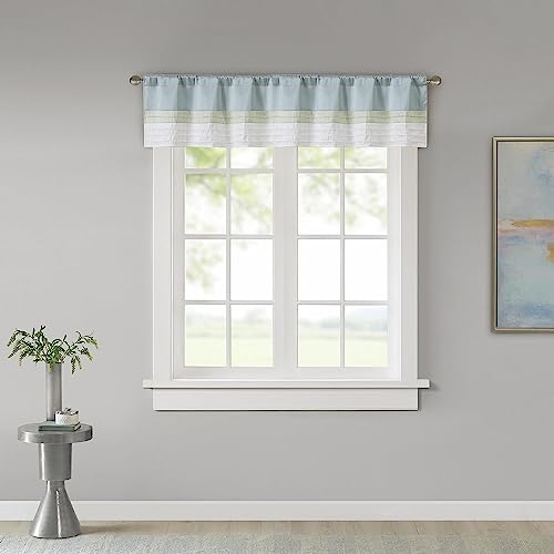 Amherst Polyoni Pintuck blågrön fönster valance, modern stångficka valanser för fönster, 50 x 45 cm, naturlig