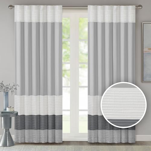 Madison Park fönstergardin, enkelpanel, konstgjord siden, eleganta veck, gardiner med stångfickor för vardagsrum, integritet, mörkläggningsgardiner för sovrum och sovsal, Amherst, 127 x 213 cm (50 x