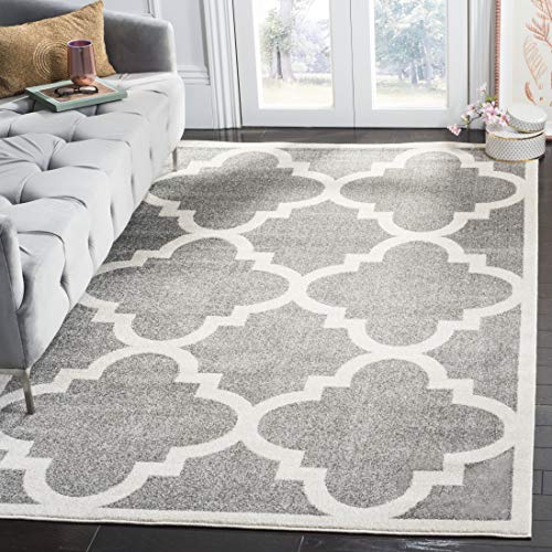 Safavieh Trellis inomhus/utomhus vävd rektangel områdesmatta, Amherst kollektion, AMT420, i mörkgrå/beige, 91 x 152 cm för trädgård, uteplats eller valfritt utomhusutrymme