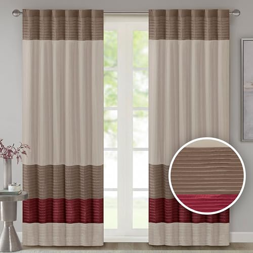 Madison Park fönstergardin enkelpanel, konstgjord siden, eleganta veck, gardiner med stångficka för vardagsrum, integritet, mörkläggningsgardiner för sovrum och sovsal, Amherst, 127 x 213 cm (50 x 84
