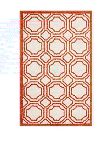 Safavieh geometrisk inomhus-/utomhusvävd rektangulär matta, Amherst kollektion, AMT411, i elfenben/orange, 76 x 122 cm för trädgård, uteplats eller valfritt utomhusutrymme