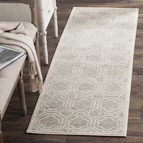 Safavieh geometrisk inomhus-/utomhusvävd golvmatta, löparmatta, Amherst-kollektion, AMT411, i ljusgrå/elfenben, 69 x 213 cm för trädgård, uteplats eller valfritt utomhusutrymme