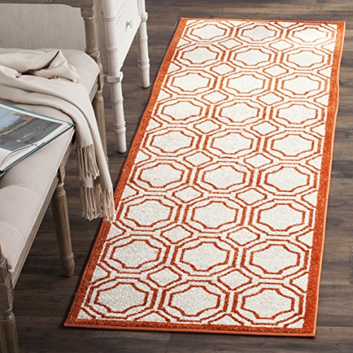 Safavieh geometrisk inomhus/utomhus vävd löparmatta, Amherst kollektion, AMT411, i elfenben/orange, 69 x 213 cm för trädgård, uteplats eller alla utomhusutrymmen