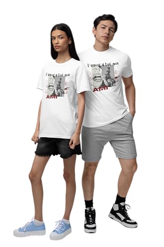 Republic of California Unisex URCTS029-XL-WH L-Amour-a-Tue-Mon-Ami-T-shirt - vit, XL, Vitt och blått, XL