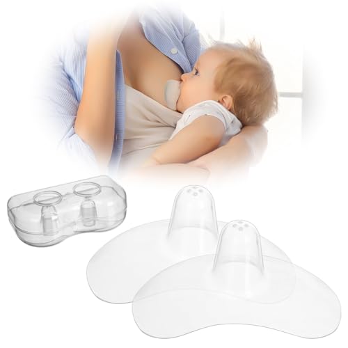 Aolso Bröstvårtsskydd storlek medium, bröstvårtsskydd amning, bröstskydd med steriliserbart resväska, BPA-fri återanvändbar mjuk silikon för amning (semicirkel)