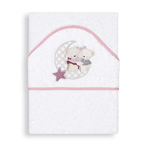 Interbaby Cape du Bain 400 GSM Terry Cotton Model Osito Amoroso vit/rosa 100 x 100 cm