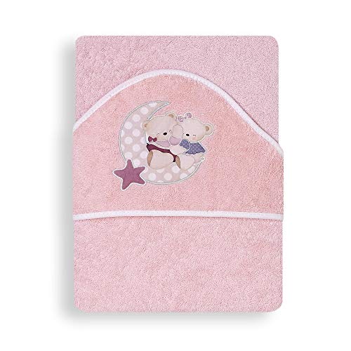 Interbaby Cape du Bain 400 GSM Terry bomull modell Osito Amoroso rosa 100 x 100 cm