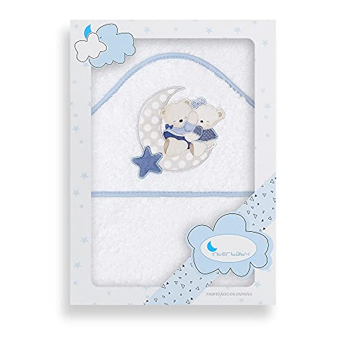 Interbaby Cape du Bain 400 GSM bomull terry modell Osito Amoroso vit/blå 100 x 100 cm