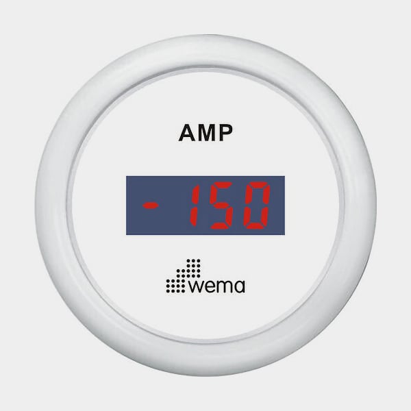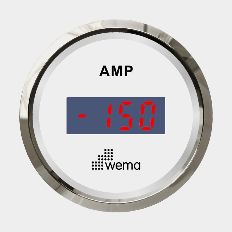 Amperemätare +/- 150AH digital inkl. shunt vit