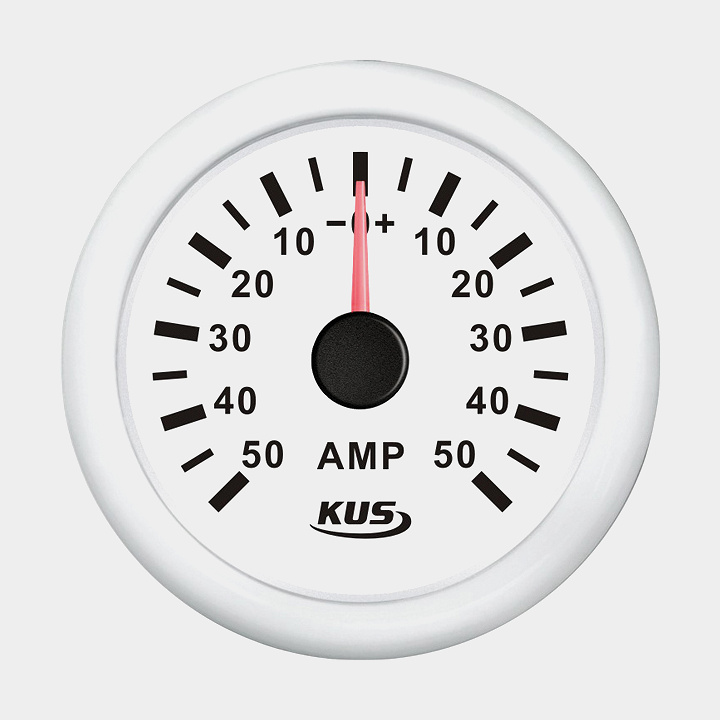 Amperemätare KUS, imfri, Ø52 mm, 12 V / 24 V, shunt, vit + 50A shunt