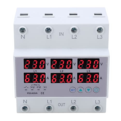 3 Phase DIN Rail Voltmeter Amperemeter Multi Tester, AC 390-500V Automatic Overcurrent Protection(63A)