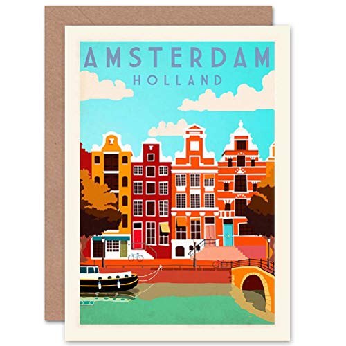 Wee Blue Coo Holland Amsterdam – kanal Barge färgglada gratulationskort CP1289