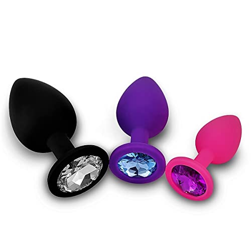 Anal Plug Pack of 3 Anal Toys, Silicone Adult Sex Anal Trainer Butt Plug for Beginners Advanced Players Anal Training Sets with Flared Suction Base Prostate Massager for Men, Women & Couple (Black)