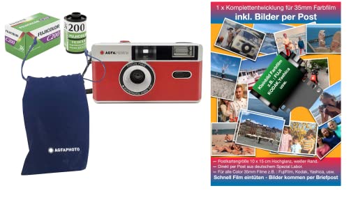 Agfa Foto analog 35 mm liten bildfilm fotokamera röd + svart/vit bilder film + batteri + komplett utveckling film + bilder