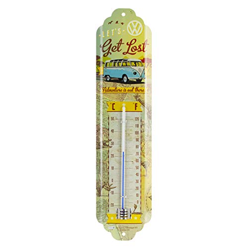 Nostalgic-Art Analog termometer i retrostil, Volkswagen Bulli – Let's Get Lost – Presentidé för VW-buss, av metall, Deko vintagedesign, 6,5 x 28 cm