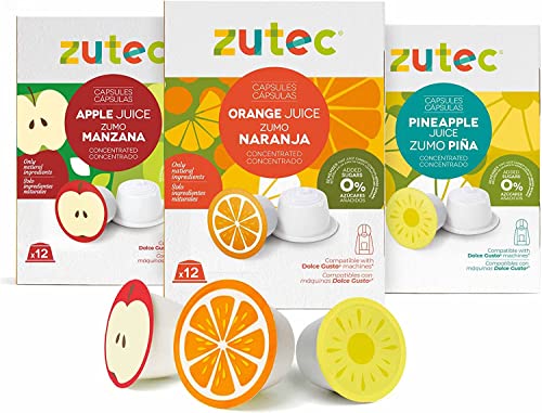 Zutec - Blandade Juice kapslar 2 (Apelsin, Ananas och Äppel) - Kompatibel med Nescafé Dolce Gusto®* kaffemaskiner - 3 förpackningar med 12 kapslar - 36 kapslar