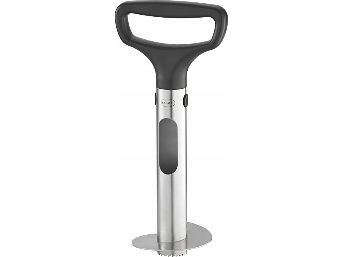 RÖSLE Ananasskärare PRO, högkvalitativ ananasskalare för urkärning och skärning av ringar, med ergonomiskt handtag, enskärningsskala och utskjutningsslits, ABS, 18/10 rostfritt stål