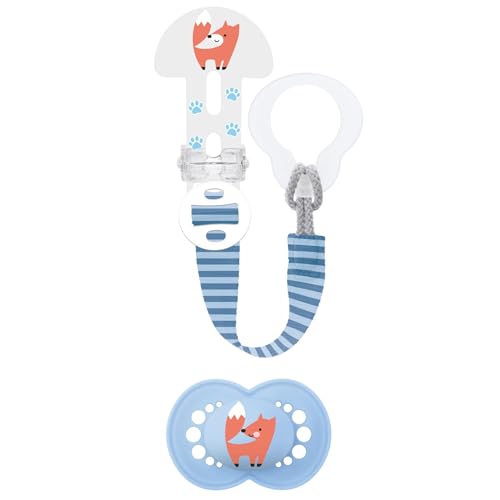 MAM, napp och nappklämma 18+ månader slumpmässig färg - anatomisk och symmetrisk napp i silikon - tvättbart nappklämma med justerbar längd, kompatibel med alla typer av nappar