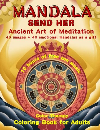 MANDALA -SEND HER-Ancient Art of Meditation-Color Therapy: Coloring Book for Adults-40 images + 40 emotional mandalas as a gift-10 hours of free zen music