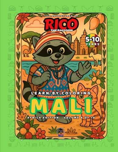 Rico the Raccoon Explores Mali – Coloring Book for Kids: Desert Cities, Music and Ancient Gold | Educational Curiosities | Ages 4–8