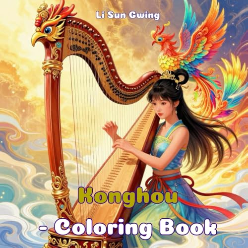 Konghou Coloring Book: For Kids & Adults (52 Cartoon Images of Creative Art) Ancient Chinese plucked string instrument (Music of Tang Dynasty, China) It can produce songs for Kung Fu Lovers