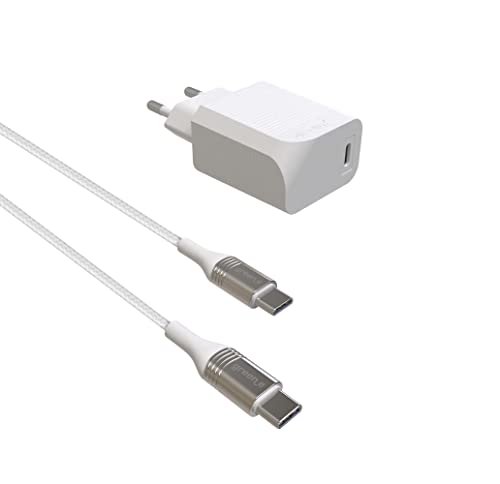 Green_e Laddningssats för Android [Certifierad europeiska standarder] USB-C/C Synchro och laddningskabel med snabbladdare för Samsung Galaxy S20 S10 S9 Huawei - 1,30 m - vit