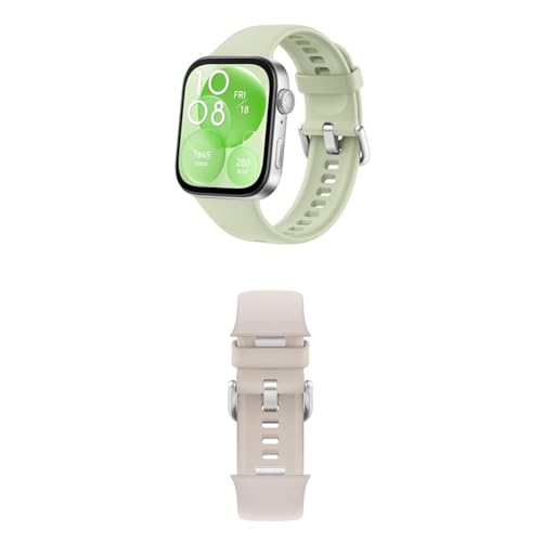 HUAWEI Watch FIT 3 Green + Extra Strap Moon White, Bluetooth-samtal, GPS, Smartwatch, Aluminiumfodral, iOS & Android, 1,82" AMOLED-skärm, upp till 10 dagars batteritid, hälso- och träningshantering