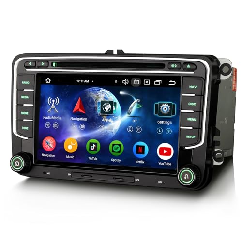 Erisin Android 14 4 GB RAM 64 GB ROM 8-kärnig DVD-bilradio GPS-navigator för VW Passat B6 Golf V VI Touran Skoda Seat Tiguan Jetta T5 7 tums pekskärm stöder CarPlay DAB WiFi 4G FM Bluetooth 5.0 A2DP