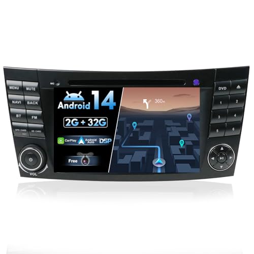 Erisin 8-kärna 4 GB+64 GB Android 14 2 DIN bilradio GPS-navigering för Mercedes Benz E/CLS klass W211 W219 7 tums pekskärm CarPlay Android Auto DAB+ radio DSP Bluetooth 5.0 A2DP WiFi USB OBD2 SWC
