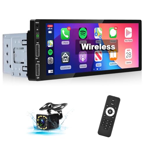 Hodozzy Trådlös Carplay bilradio 1 Din Android Auto med 6,86 tum IPS-skärm, stereo bil Bluetooth, pekskärm med spegellänk/FM/USB/AUX/SWC/röststyrning + backkamera