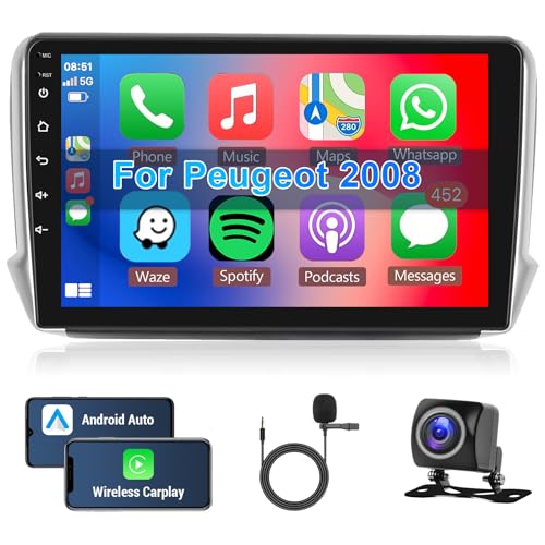 Hodozzy Android bilradio för Peugeot 208/2008 2012-2018 Radio Carplay trådlös Android Bil, Stereo Touchscreen 10 tum bilradio GPS Wifi Bluetooth Hifi FM RDS Radio 2 Din Skärm för Peugeot