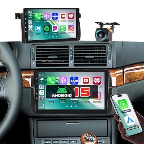 [1G+32G] Hikity Car Radio för BMW 3-serie E46 1999 2000 2001 2002 2003 2004 2005 Android 13 Trådlös Car Carplay Android Auto med 9" i Bluetooth handsfree RDS FM AHD bakre kamera
