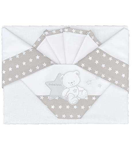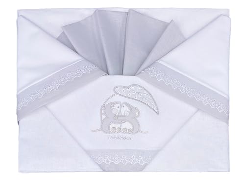 Andy&Helen 3-delat set broderat spjälsäng underlakan med elastiska band och örngott. Lämplig för spjälsängar MAXI, NEXT TO ME, sidosäng