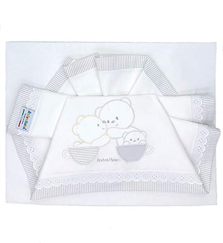 Andy & Helen 2/400d11 GR dra-på-lakan vagga, broderad, grå